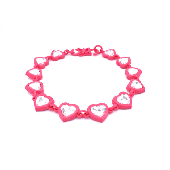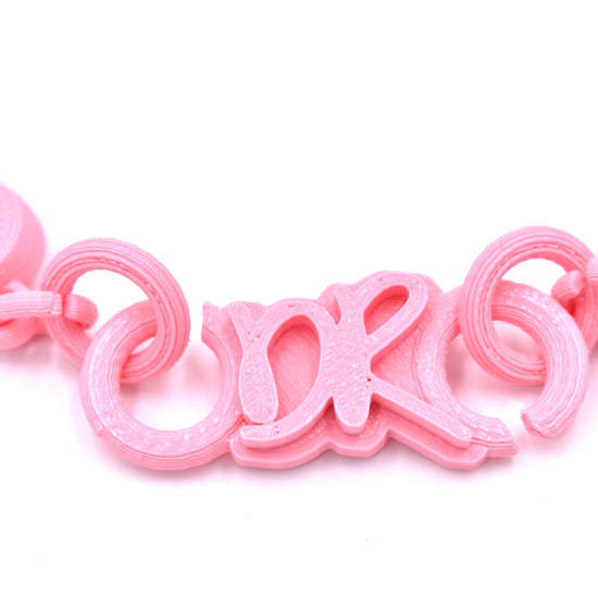 This 3d printed heart shaped tennis style necklace is made with premium bioplastic, measures 16" and is finished with a hook closure.